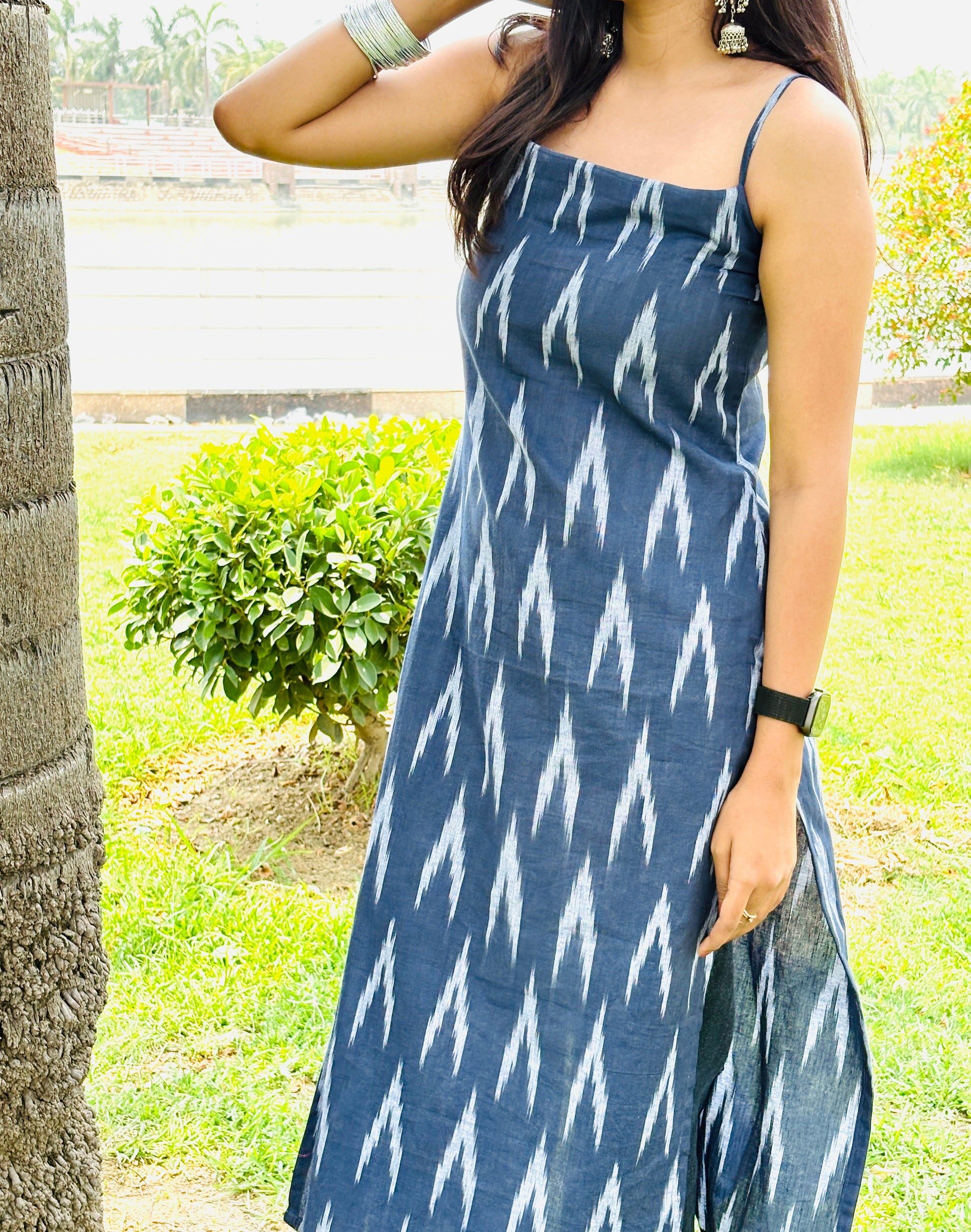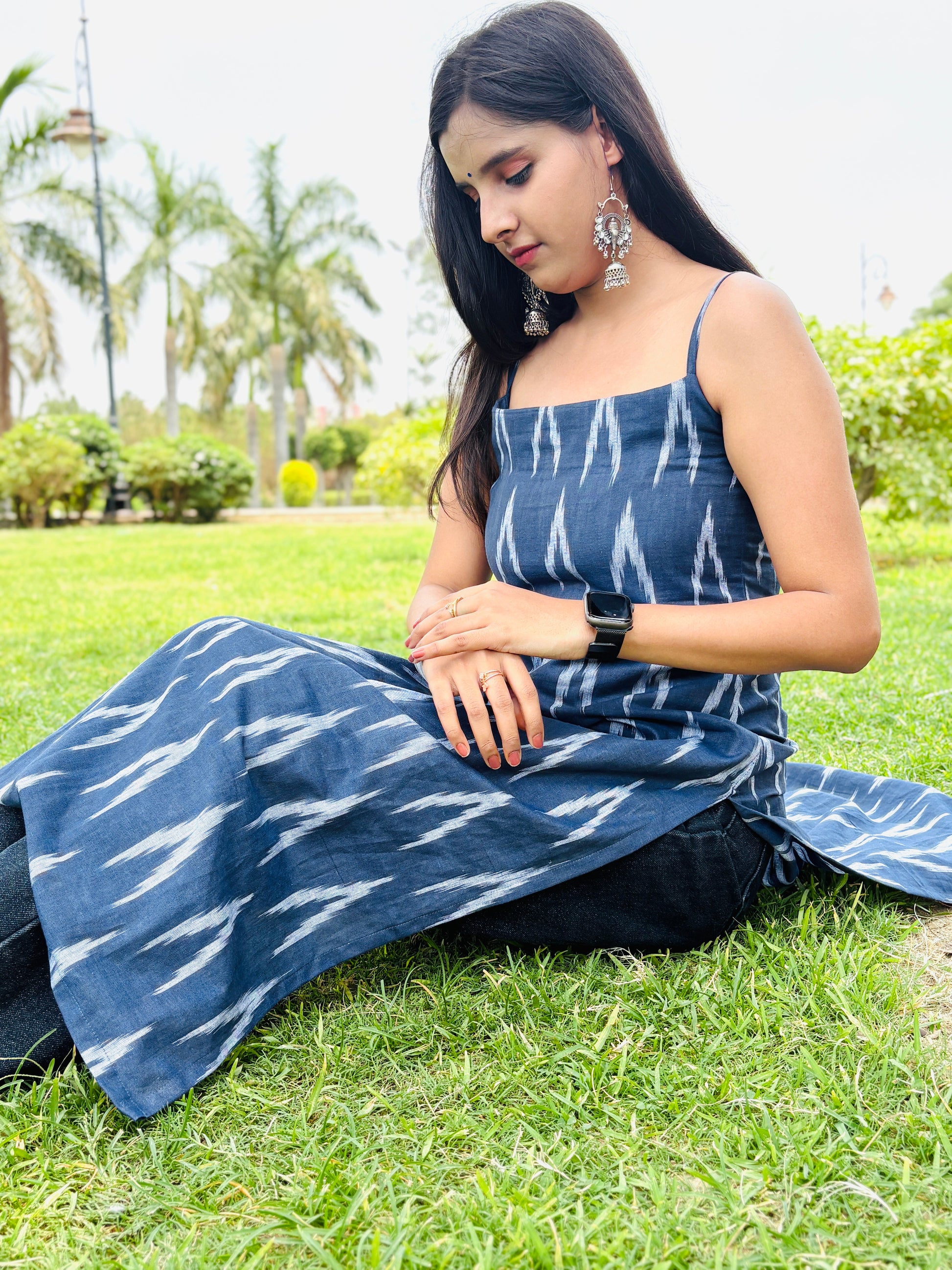 Step into our dark bloom elegant blue long kurti, a beautiful blend of tradition and trend. Crafted from lightweight cotton slub fabric, this kurti offers all-day comfort and effortless