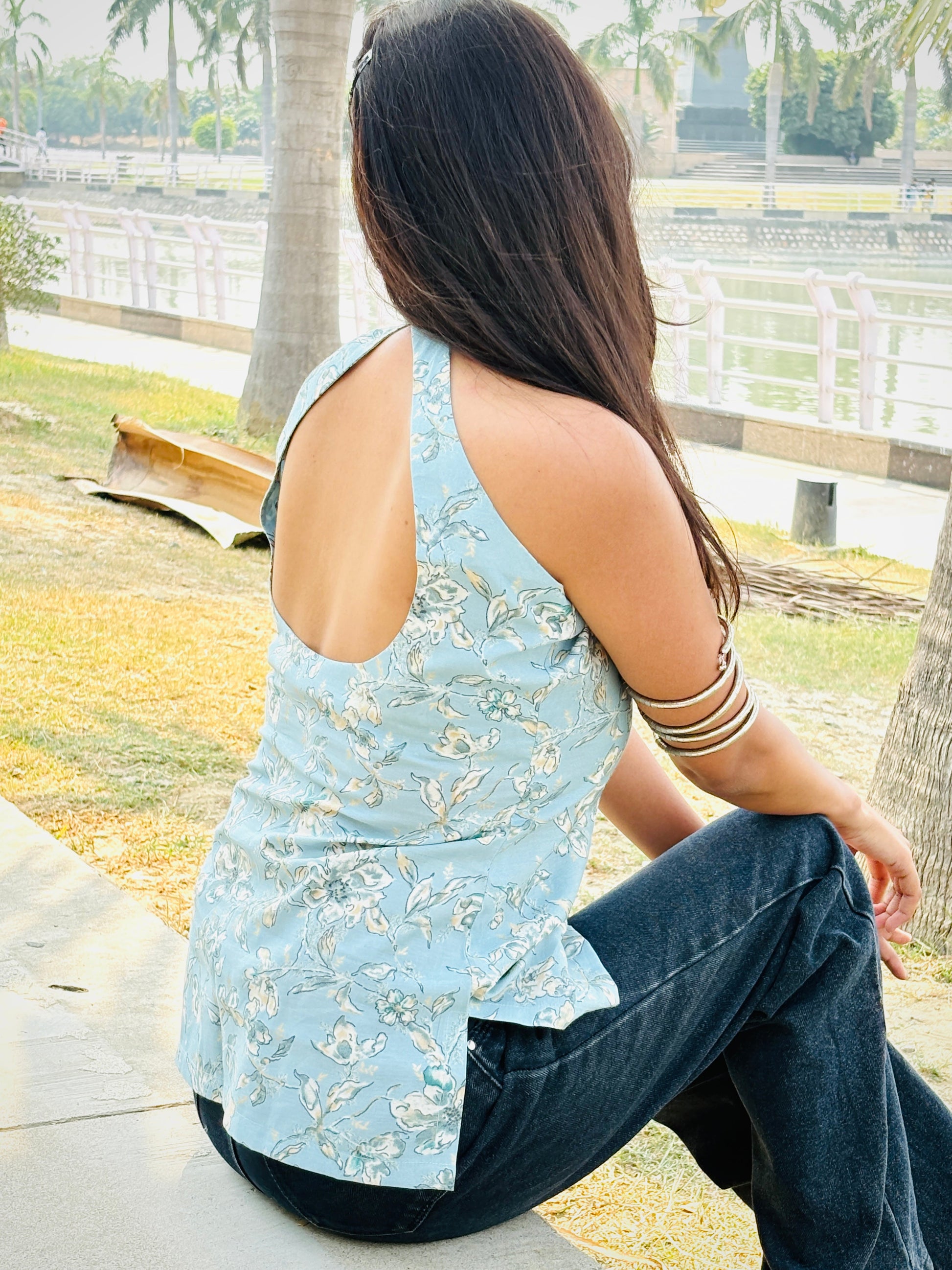 Turn heads in our signature Indo-Western blue top, where tradition meets trend.